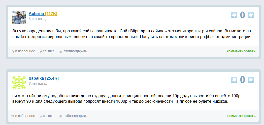 Отзывы в сети о проекте «Битпамп»