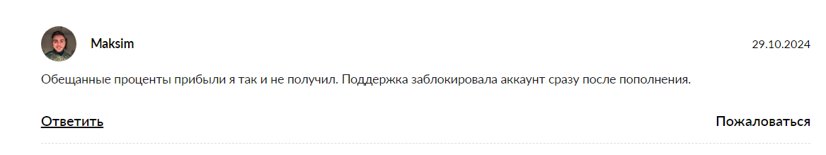 • Проект имеет только негативные отзывы в сети, что указывает людям на отсутствие хорошей репутации и на отсутствие реального заработка.