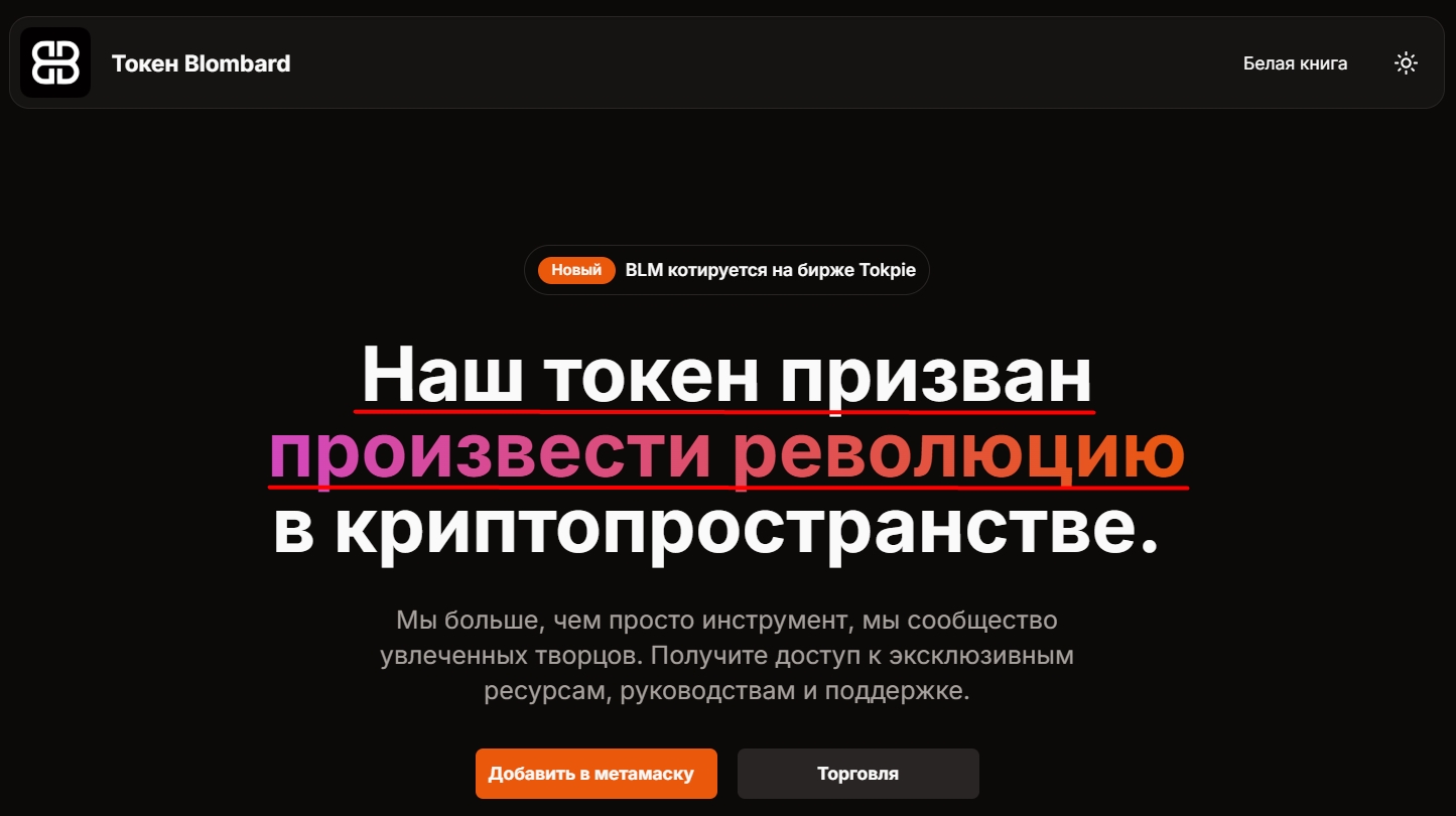 Сайт blombard com — это одностраничный лендинг, который создан 18 февраля 2024 года и изменен 26 ноября 2024 года. Платформа предлагает безопасную торговлю на собственной бирже бломбард. Пользователям гарантируют безопасность транзакций, круглосуточную техподдержку и конкурентные комиссии. За регистрацию клиенты могут получить бонус 10$.