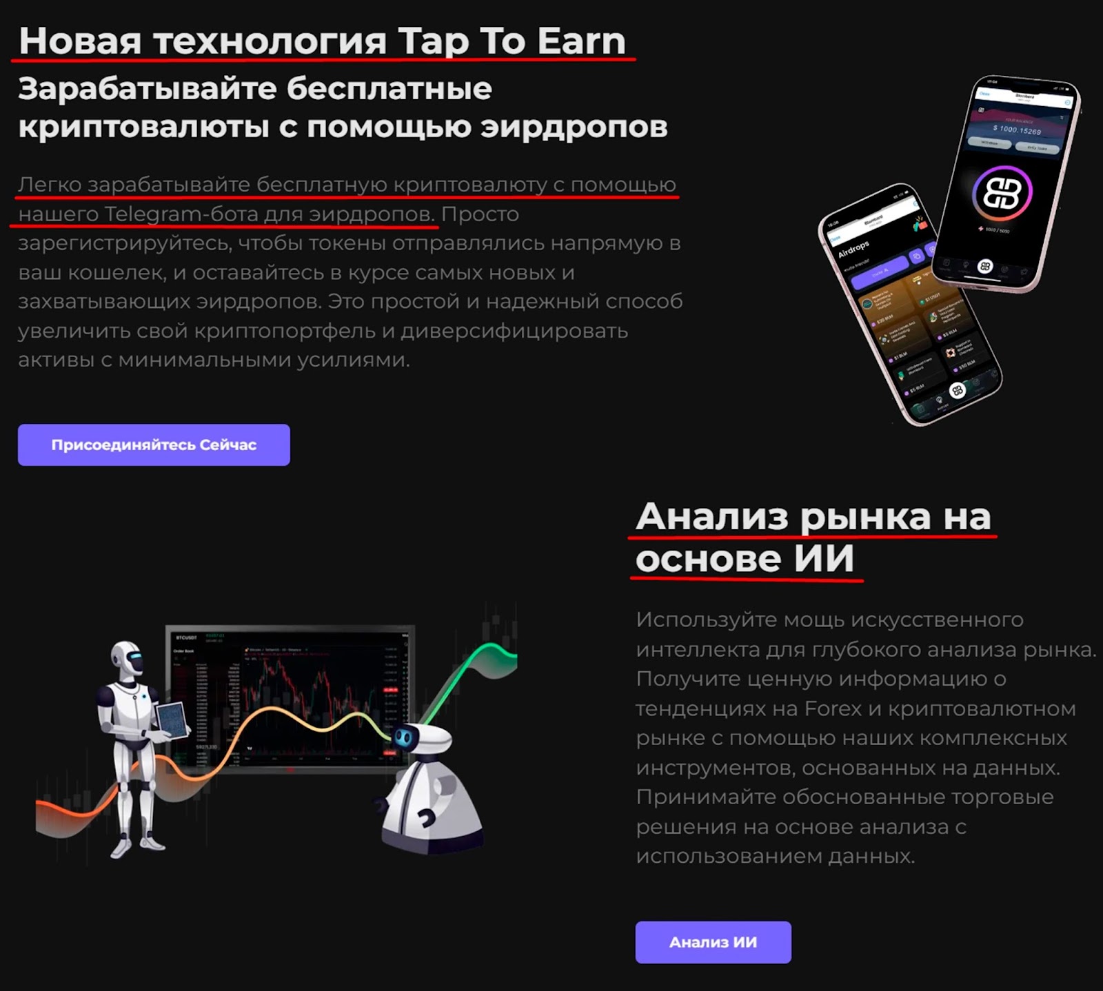 На веб-странице blombard com можно узнать про преимущества в виде новой технологии Tap-To-Earn, с помощью которой можно заработать на аирдропах без вложений. Торговый функционал проекта основан на анализе рынка искусственным интеллектом.
