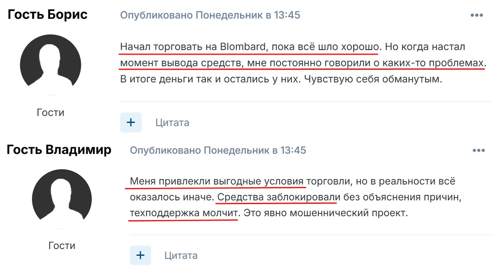 Отзывы пользователей об услугах брокера blombard