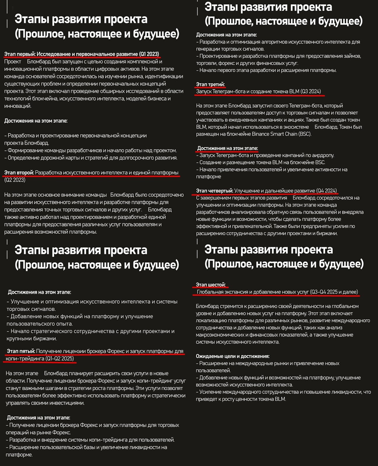 У проекта blombard есть дорожная карта. В документе описаны этапы развития с 2023 по 2025 годы. Основная часть информации в road map не содержит конкретики.