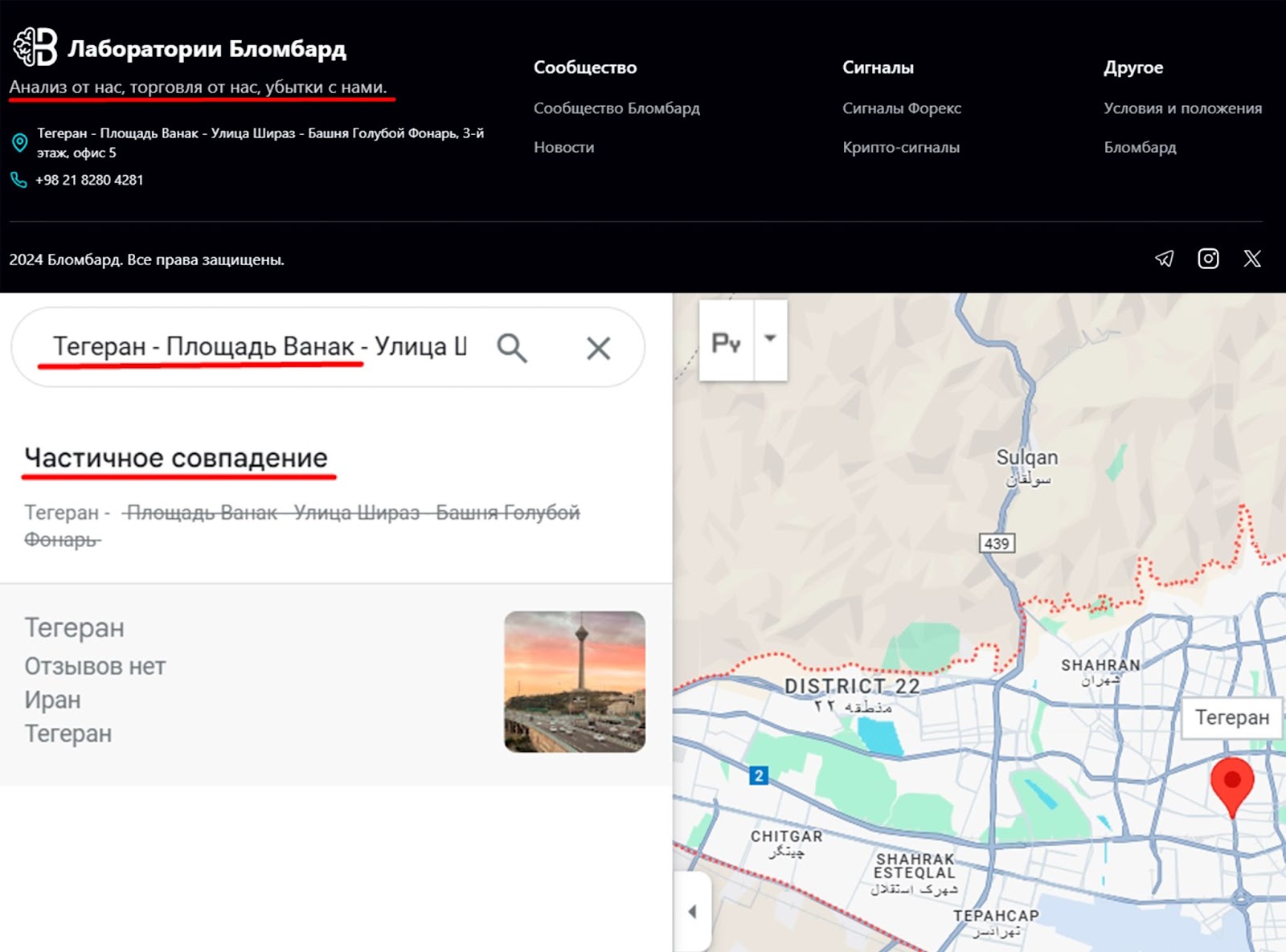 Адрес офиса указан только на сайте blombard ai. Но при поиске на google-картах найти организацию не представляется возможным.