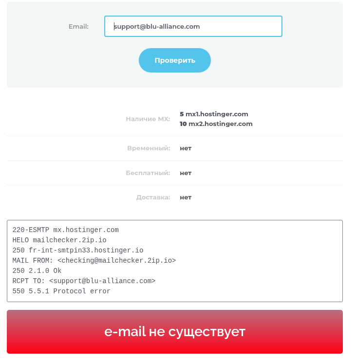 Для связи указан email support @ blu-alliance com. Но он не существует. Номера телефона поддержки на сайте нет, что странно для брокера, который говорит о штате 500+ человек и партнерстве с крупнейшими банками мира. Нет и верифицированного физического офиса — присутствие компании по указанному адресу проверить невозможно.