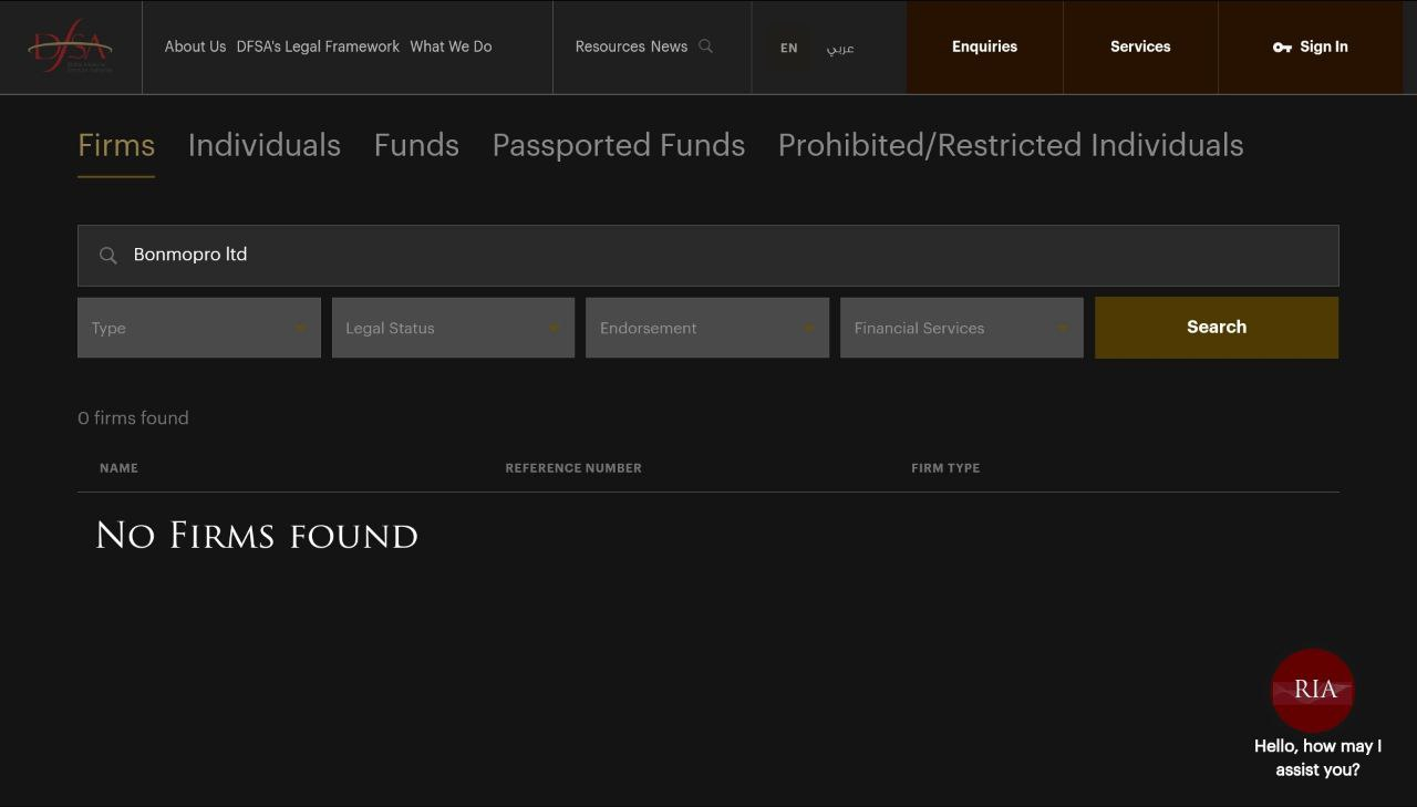 В ходе разоблачения Bonmopro выяснилось, что предоставляемые ссылки являются фейковыми. Абсолютно никаких подтверждений тому, что компания действительно имеет разрешение на работу указанных комиссий нет.