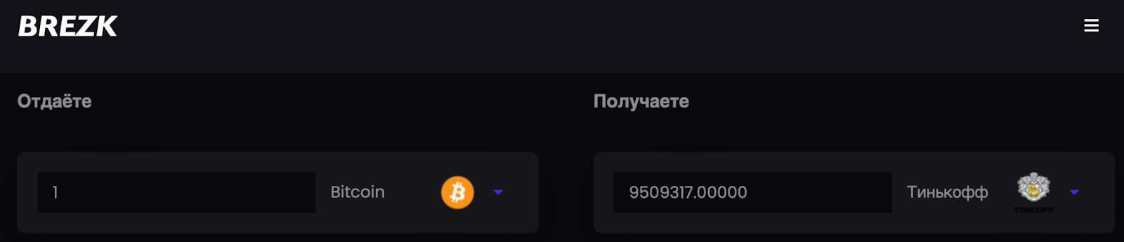 Brezk — обменник криптовалюты в онлайн-формате. «Брезк» предлагает обмен такой валюты, как Bitcoin, Nextcoin, Ethereum и других коинов, которые основываются на технологии блокчейн. Компания дает возможность перевести крипту в российские рубли.
