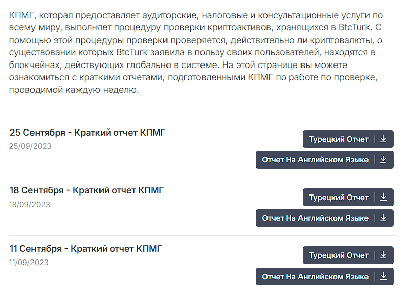 на платформе публикуют отчёты о проверке криптоактивов KPMG – международной аудит-консалтинговой корпорацией. По словам представителей, процедура показывает, ли существуют резервы криптовалют, заявленные на сайте, на самом деле.