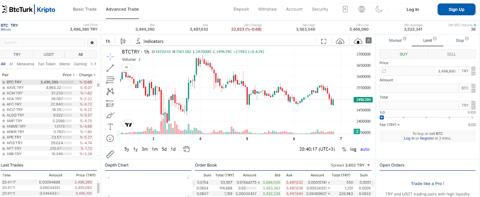 На платформе Btcturk Kripto можно торговать 133 токенами и 1 фиатом – турецкой лирой. Однако вносить лиры могут только граждане Турции через банки после верификации личности. Для турков действует НДС 30% на вывод средств. Для всех остальных комиссий на внесение и вывод нет.