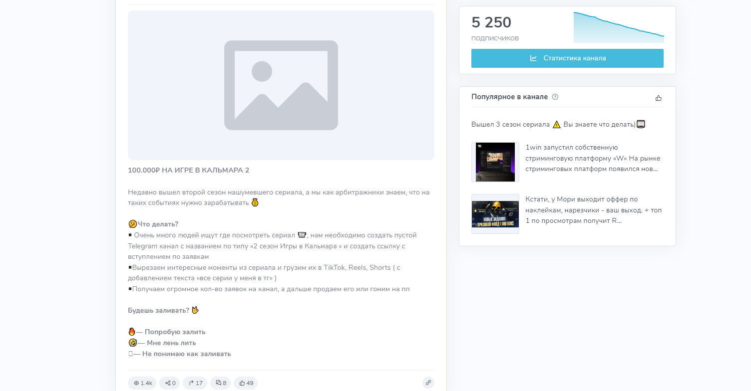 Методы накрутки трафика в социальных сетях в ТГ канале «Будни арбитражника»