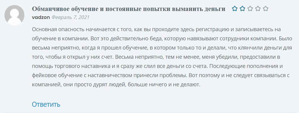 Также сам сайт даже говорит о том, что 2 из 3 инвесторов потеряют деньги при торговле на данном ресурсе. Но разве это остановит любителей легкой наживы? Ведь не факт, что вы окажетесь в числе первых двух. В реальности нет никаких 67.7% неудачных вложений, потеря денег будет в любом случае 100%. Собственная торговая площадка создает большие возможности для спекуляций, включая такие банальные способы обмана, как подкрутка рыночных значений в угоду брокера.