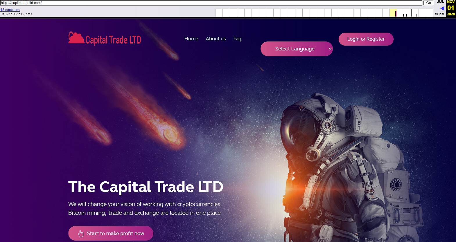 В ее рамках кураторы организации «КапиталТрейдЛтд» не проявили находчивости, показав клиентам картинку с космонавтом в расчете на веру в быструю прибыль. Создатели CapitalTradeLtd убеждали в безопасности внесения депозитов, правда через пару лет после старта работы исчезли.