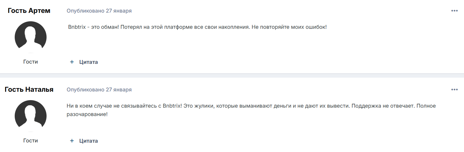 Отзывы от реальных клиентов о брокере BnbTrixs