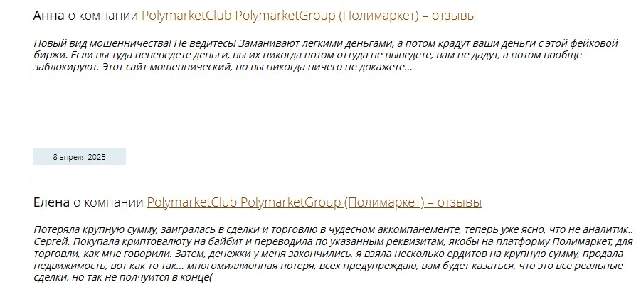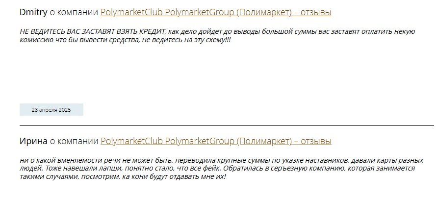- негативные отзывы cfd polymarketgroup com от клиентов.