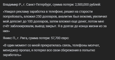 В открытых источниках нет большого количества комментариев об организации. Те отзывы, которые имеются, являются негативными. Пользователи утверждают, что смогли потерять огромное количество сбережений при сотрудничестве с брокером.