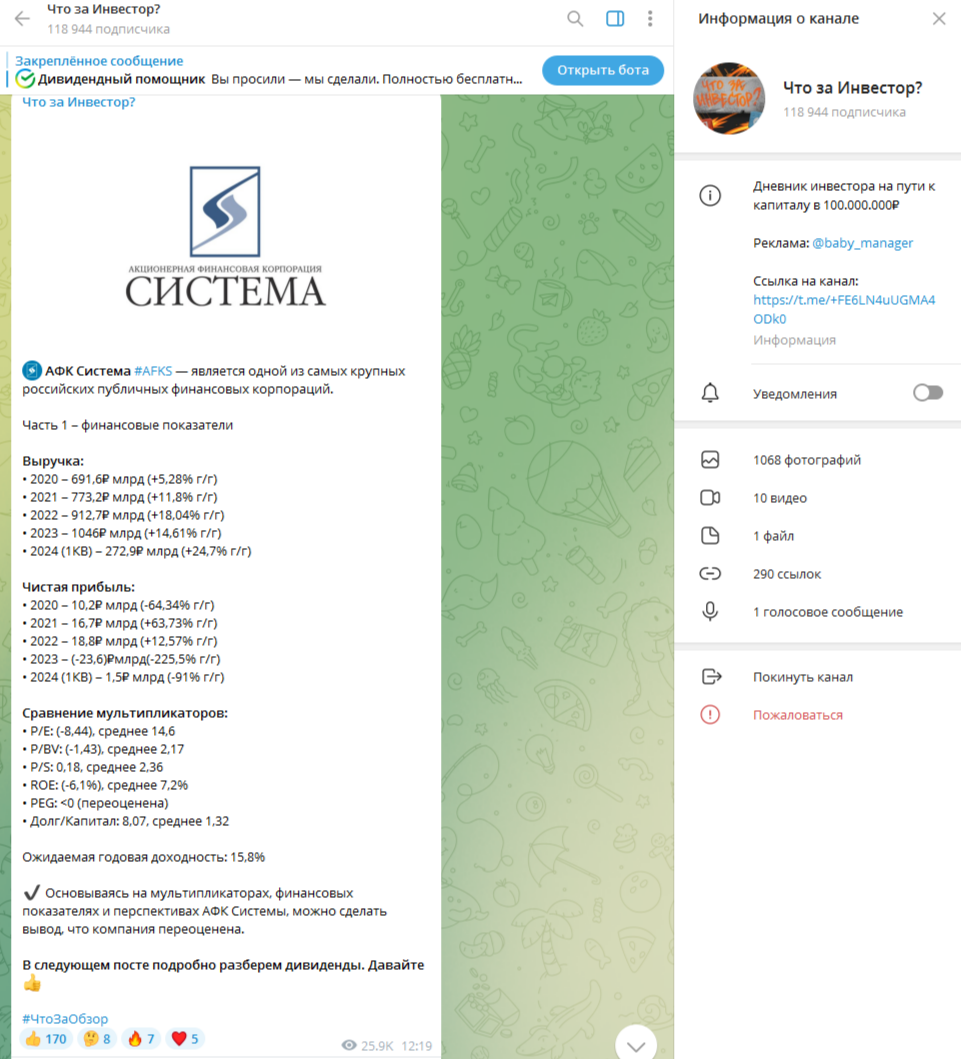 Обзор финансового телеграм-проекта “Что За Инвестор”, анализ деятельности телеграмм-канала и отзывы о работе частного трейдера