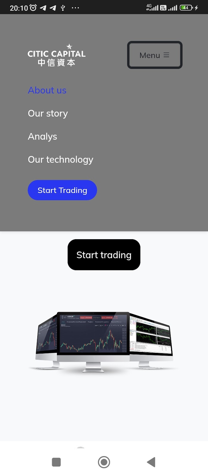 Регистрация на площадке проводится по адресу электронной почты и телефонному номеру. После входа в аккаунт, открывается торговый терминал по адресу citic hongkong com. Терминал выглядит нисколько не лучше, чем основной сайт. Никакой новой информации о компании и условиях сотрудничества там также нет.