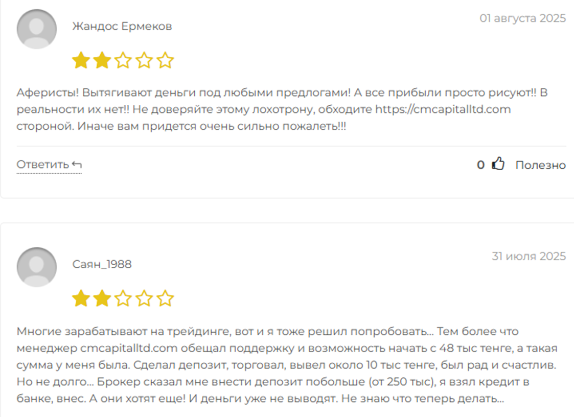 Негативные отзывы на Cmcapitalltd com только подтверждают, что брокер является мошенником.