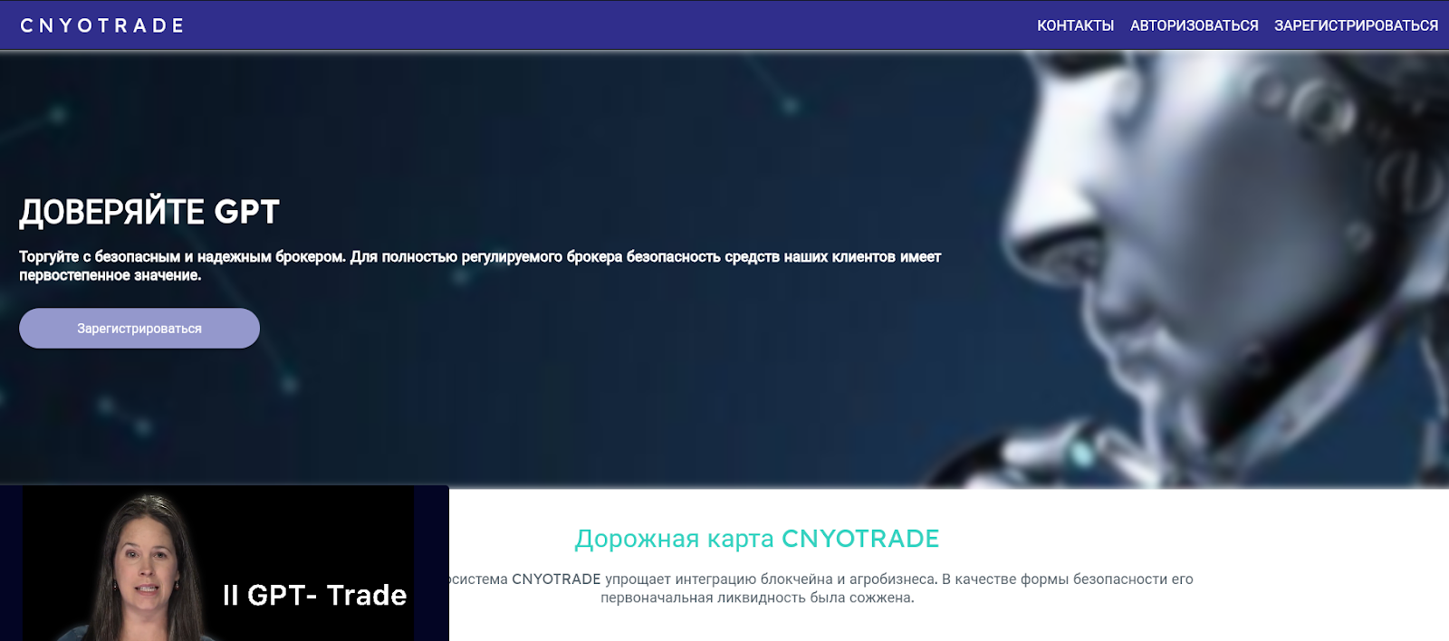 Cnyotrade позиционирует себя, как надежного брокера и инвестиционную компанию на базе искусственного интеллекта. Инновации в заработке на финансовых рынках – это главное преимущество компании, которая выстраивает вокруг него свою деятельность с 2023 года. Только вот в результате простой проверки первичных данных всплывают несоответствия. К примеру, домен сайта, как оказалось, зарегистрирован в 2024. Хотя указывается, что сайт работает несколько лет. В этой статье рассмотрим основные аспекты работы брокера.