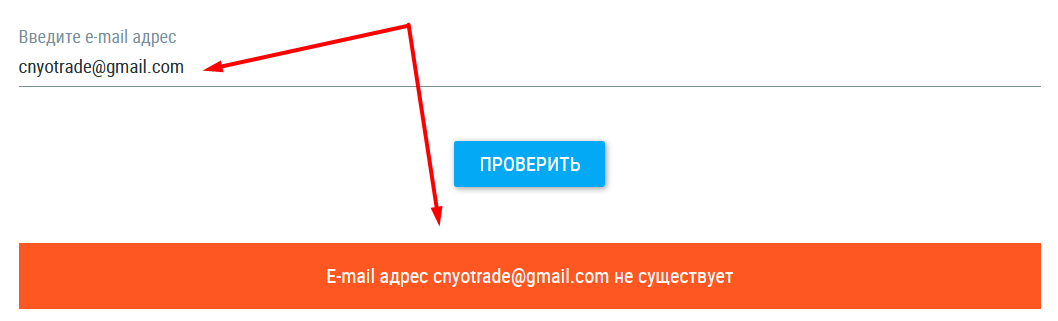 Однако проверка адреса электронной почты показывает, что такого email не существует.