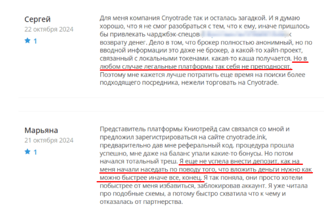 Проанализировав деятельность Cnyotrade, хотим обратить внимание на моменты, которые делают сотрудничество с брокером чрезвычайно рискованным: