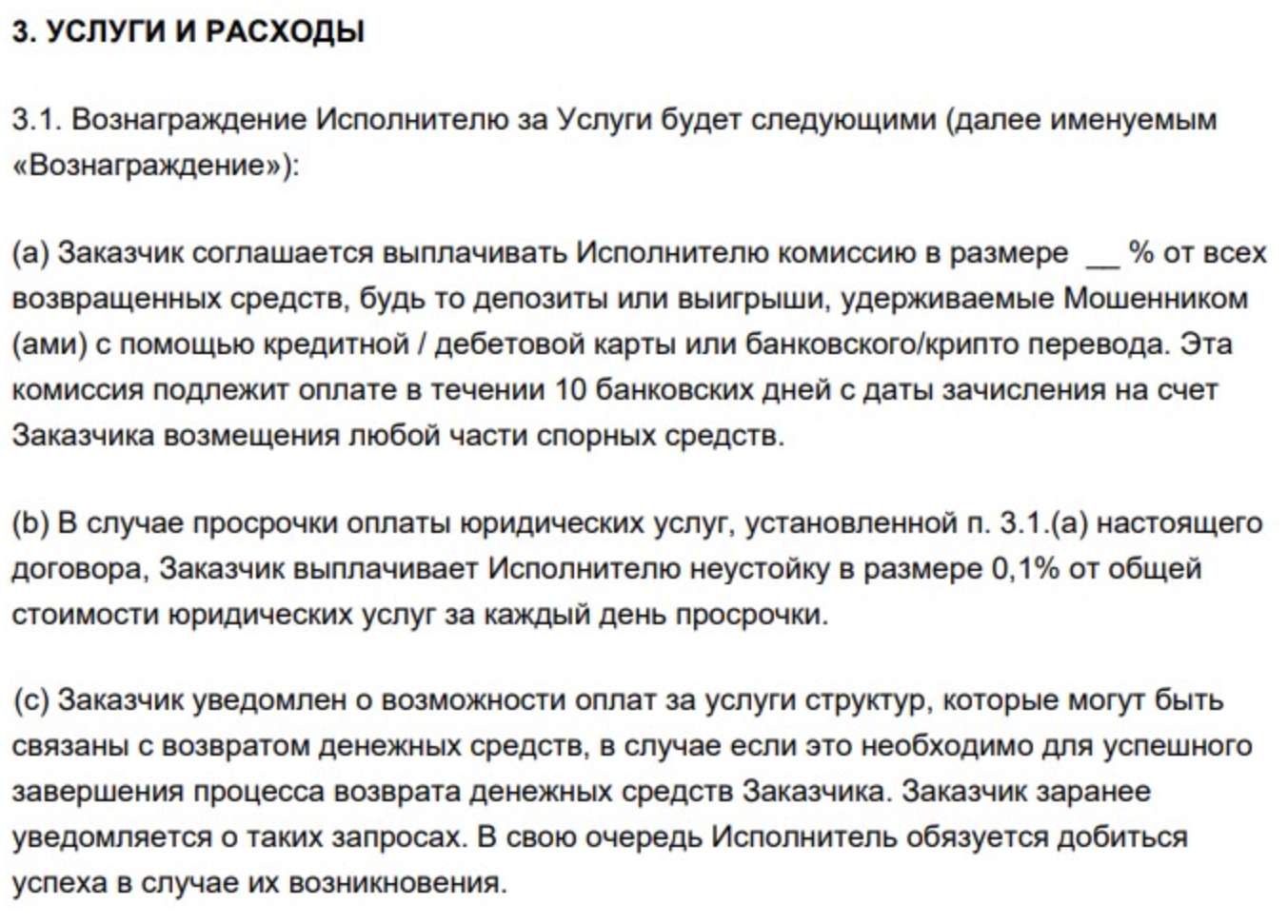 Coin Track Solutions не предоставляет бесплатных услуг. Компания предлагает покупать услуги, точная стоимость которых на сайте не указана. Во время заключения договора клиенту предоставляют бумагу, где прописан определенный процент, который он обязуется выплатить компании. Выплаты с клиенты взимаются после окончания процедуры возврата денег на счет.