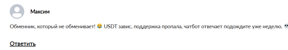 - Люди в отзывах обвиняют авторов в скаме и воровстве средств, пишут, что получить свои деньги после обмена не получится, следовательно, подтверждается негативное впечатление об обменнике.