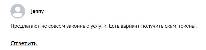 - Реальных регуляторов у проекта нет, т.е., потеряв свои деньги, вернуть их, обратившись за помощью, практически невозможно для клиента.