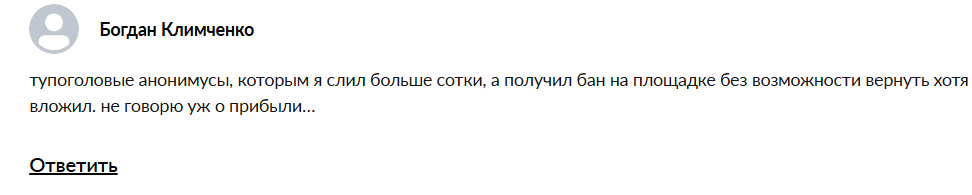 Пишут и о том, что авторы банят участников после обмена и вернуть свои деньги не получается. Участники теряют деньги и не получают прибыль.