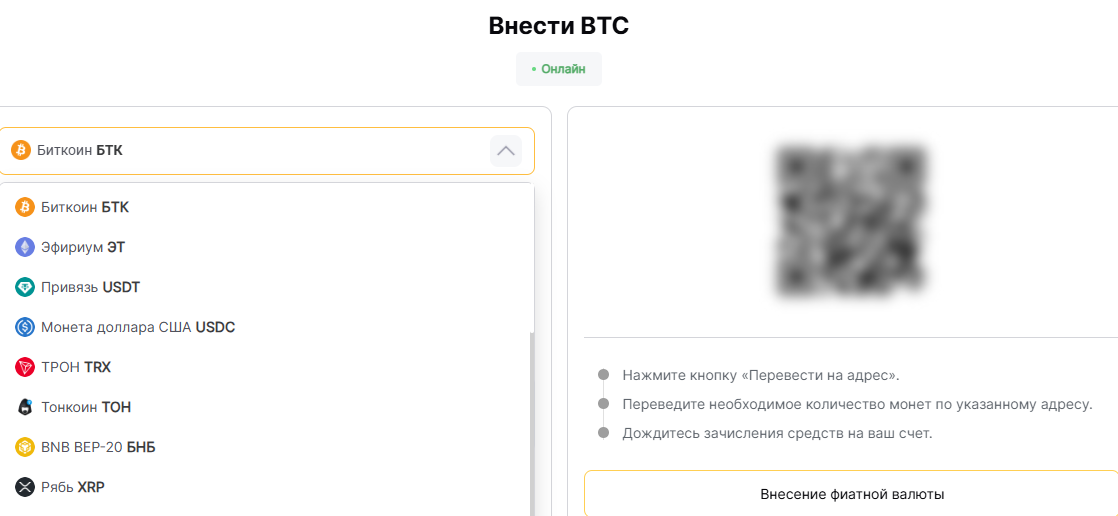 Пополнение баланса и вывод средств доступны только в крипте. Хотя на сайте и есть кнопка «внесение фиатной валюты», однако она ведет на стороннюю криптобиржу. По всей видимости, мошенники предпочитают цифровые токены, поскольку отследить конечного получателя в таком случае будет сложнее. Отправитель даже не знает имя человека, которому ушел перевод.