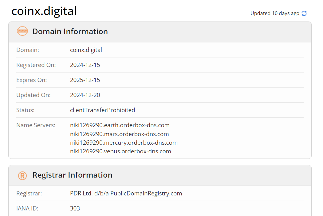 Если изучить данные с сервиса «Who Is», то можно обнаружить, что он создан в конце 2024 года. Брокерский проект CoinX Digital не имеет верифицированной статистики от успешных трейдеров, торгующих на бирже. Сервис не заработал положительную репутацию на январь 2025 года. Не сообщаются имена и фамилии создателей проекта.