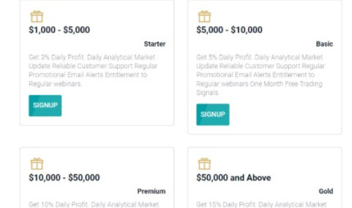 Комиссии за ввод и вывод денег не указаны на CoinX Digital. Ничего не сказано о спредах. Пользователю предлагают 4 тарифных плана. Клиент должен выбрать «Базовый», «Стартер» или премиальный или золотой тариф. В зависимости от выбранного плана сумма минимального депозита варьируется от 1000 до 50000 долларов.