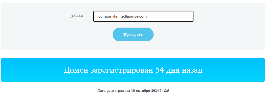 Однако эти данные довольно легко опровергаются. Любой бесплатный сервис для проверки возраста домена показывает, что сайт был зарегистрирован менее 2-х месяцев назад, а это совсем не похоже на 2021-й год. Исходя уже из этого обмана следует отказаться от дальнейшего сотрудничества с брокером, но здесь есть и другие проблемы.
