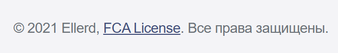 Еще одной интересной деталью является небольшая надпись внизу страницы. Здесь размещена ссылка на лицензию, а также указан, по всей видимости, год запуска торговой площадки Ellerd – 2021.