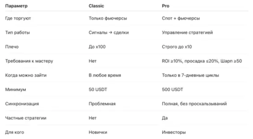 Оригинальная платформа «Копи Трейдинг Про» является одной из составляющих криптобиржи ByBit, которая появилась на ней в 2025-ом году. Она является расширенной версией функции Copy Trading Classic.