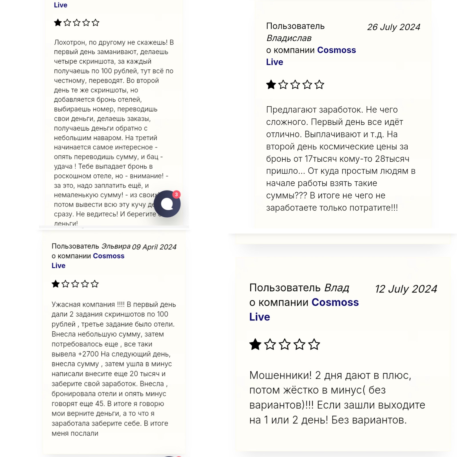 Настоящие отзывы о проекте Cosmoss Live