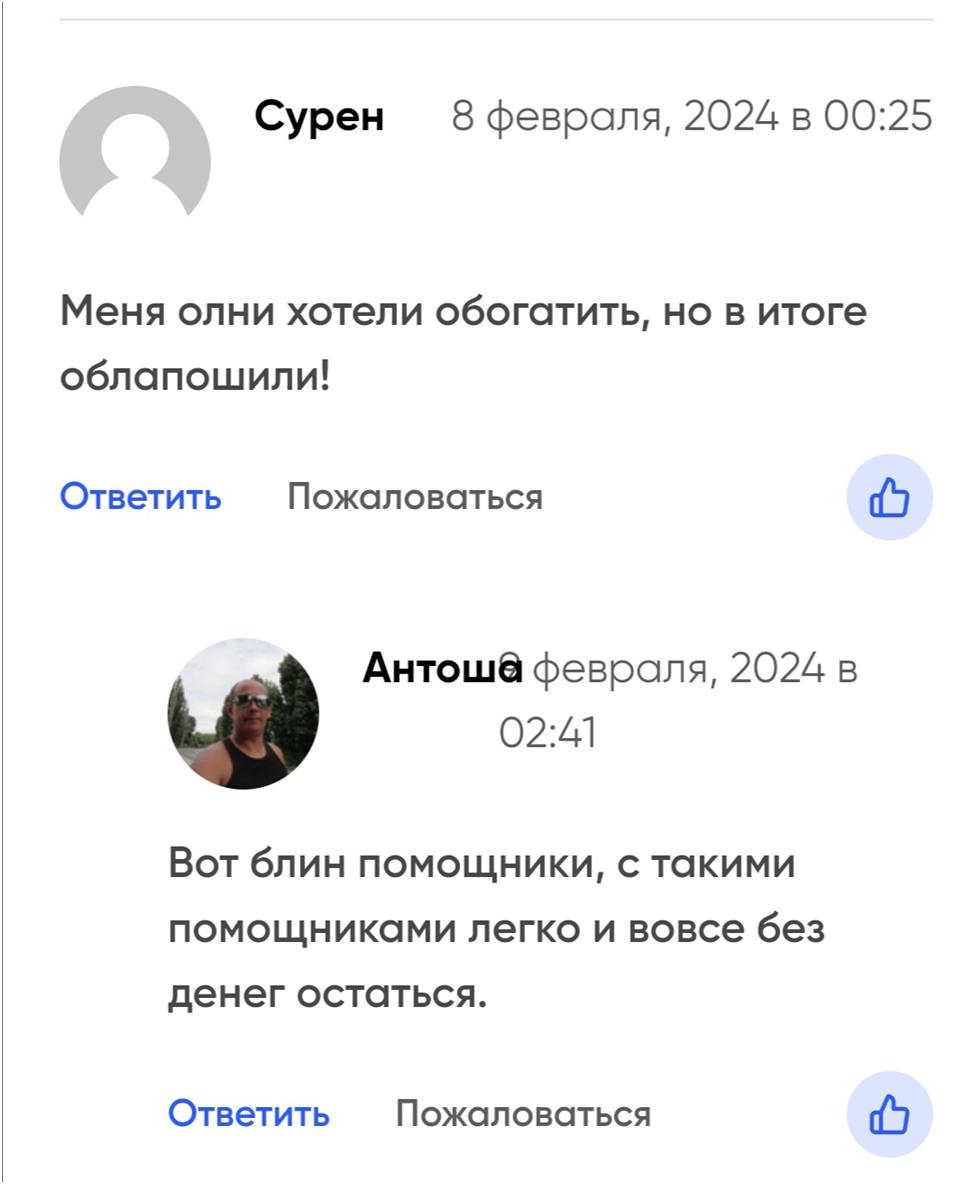 В интернете наряду с положительными отзывами, много отрицательных. Клиенты делятся своим негативным опытом, рассказывают, что их ожидания о доходах не оправдались. Пользователи также указывают, что служба поддержки работает плохо, не реагирует на сообщения, и если возникают какие-либо проблемы. Например, непонятно, как зайти в аккаунт, какой спред. В любом случае помощь получить невозможно.