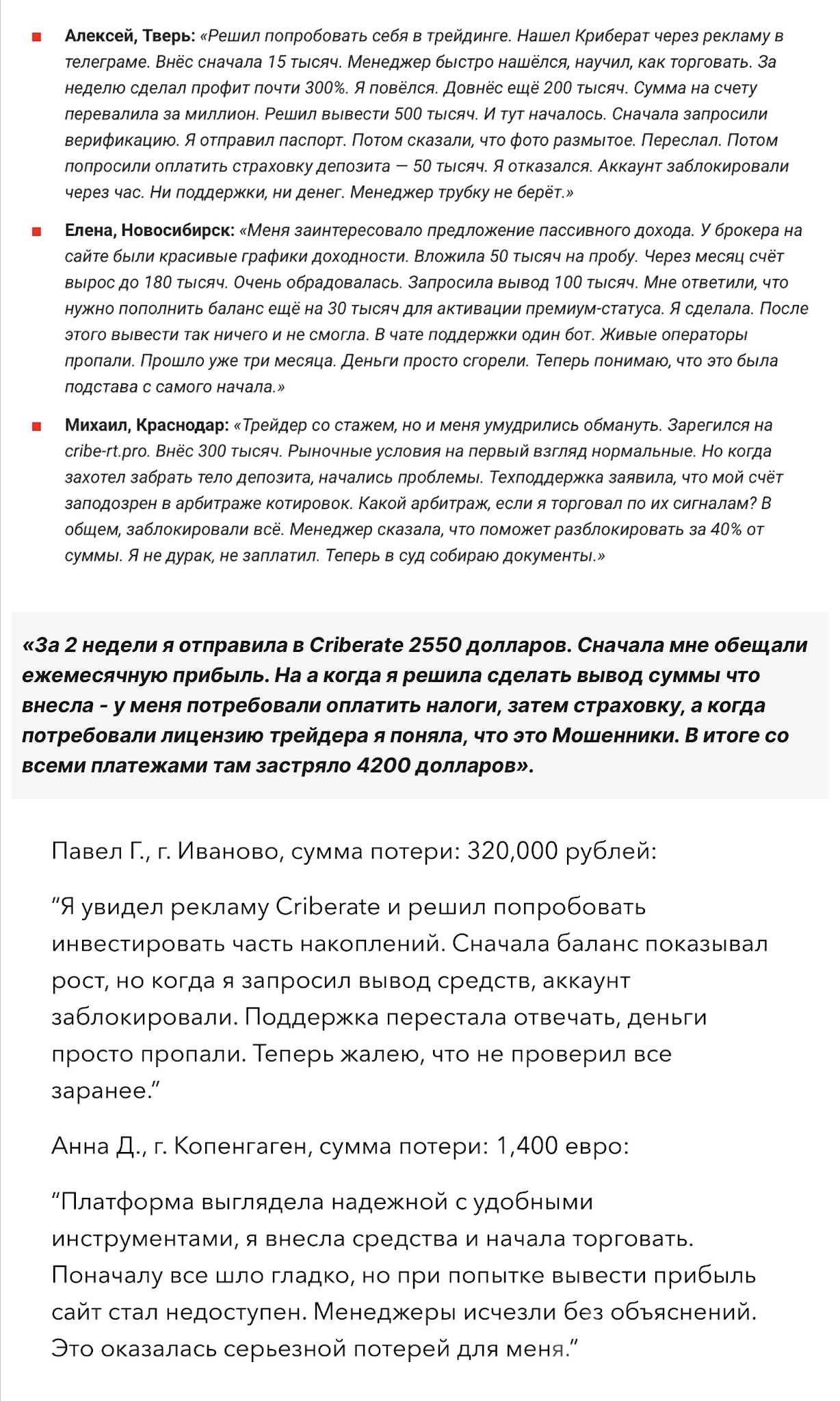 Обзор брокера Criberate Net: есть ли признаки скама, полные условия обслуживания, отзывы обманутых клиентов о «Криберейт»