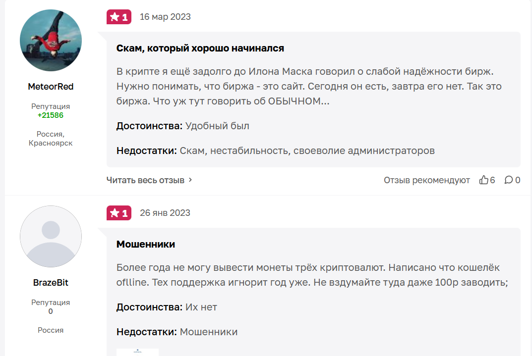 Отзывов о кошельке нет, но на блокировку средств у похожего по названию сервиса начали жаловаться еще с 2017 года. Пользователи говорят, что раньше это был достойный проект, но в итоге превратился в скам, так как активы вывести нельзя, а в поддержке никто не отвечает.