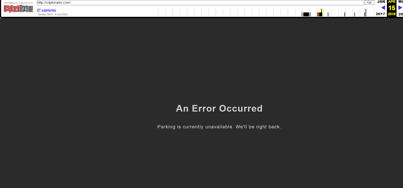 Согласно данным с сервиса WebNames, домен зарегистрировали в 2015 году, через 9 лет внесли какие-то изменения, а спустя еще несколько месяцев адрес Criptonator com недоступен, поэтому непонятно, кому имя принадлежит в 2025 году. В любом случае, при входе происходят странные события, поэтому лучше сайтом вообще не пользоваться.