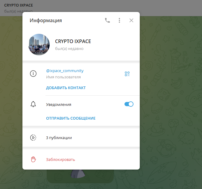 Найти следы группы в Телеграмм не удалось, так как теперь это просто контакт создателя учебного центра Ixpace academy.