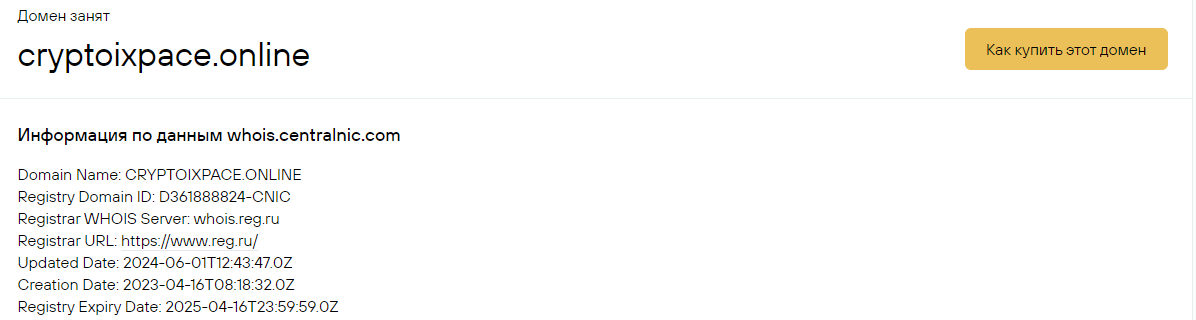 По состоянию на ноябрь 2024 года проект онлайн образования прекратил свою деятельность. С официального сайта Cryptoixpace online полностью удален движок ресурса, однако домен оплачен до 2025 года и, вероятно, имеет шансы на возрождение.