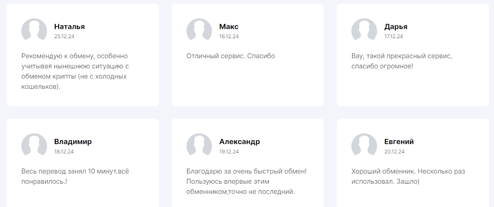 На сайте обменника собраны только положительные отзывы о «Крипто Порт ру». Нет верифицированной статистики от этих пользователей, которая бы указывала на правдивость комментариев. Люди пишут только общие слова без доказательств. Эти отзывы, скорее, похожи на накрученные комментарии.