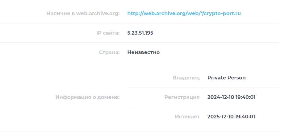 • Не указаны комиссии на сайте. Администрация Crypto Port может в любой момент изменить условия и процент вывода или обмена, оставив пользователя без денег.