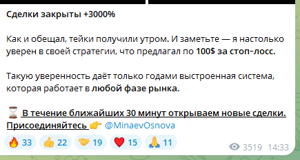Точные тарифы на обучение или копитрейдинг Минаев не публикует. Все обсуждается в личных сообщениях или через бота @MinaevOsnova. Дополнительно аналитик берет определенный процент от прибыли клиентов.Информация в Crypto «Основа» о том, что Сергей является трейдером с лицензией с 2015 года не подтверждается в интернете. Рассказы о том, что автор паблика является спикером российского экономического форума тоже голословная.