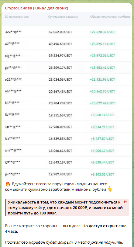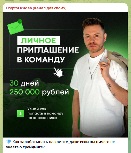Описание предложений в Телеграмм-канале «Crypto Основа канал для своих»