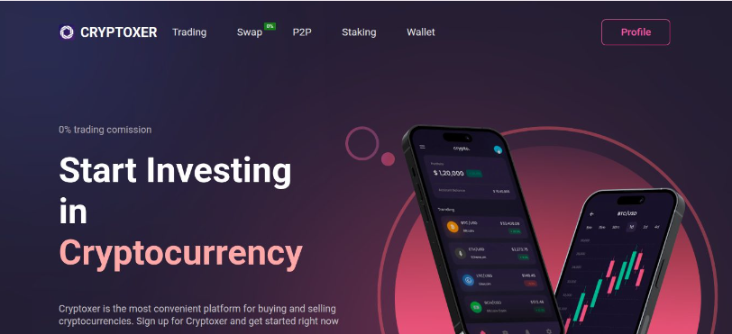 Криптовалютная биржа с интересным названием Cryptoxer маскируется под новостной сайт. Платформа «мирового класса» обещает выгодный трейдинг, инвестиции, большой выбор торговых активов, низкие комиссии, безопасность.