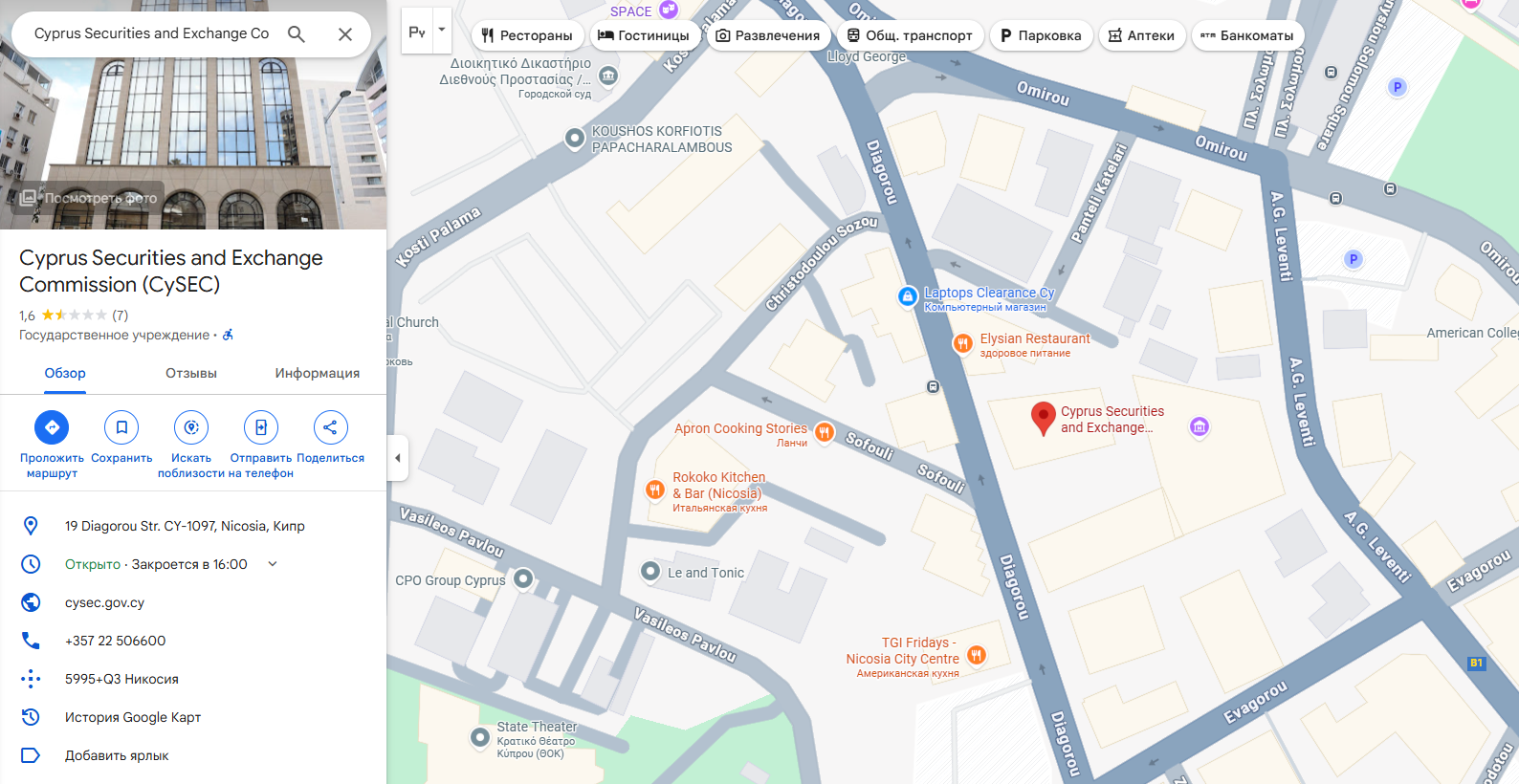 Их сайт cysec gov cy – это официальный государственный ресурс. Офис в столице. Адрес: улица Диагору, 19, Никосия CY-1097. Телефон +357 22506600. Email info@cysec gov cy. Руководит всем совет из 7 человек.