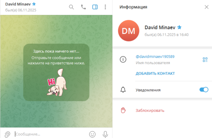 По итогам нашего расследования, мы пришли к выводу, что связываться с Давидом Минаевым и с подобными телеграм-аккаунтами, которые ведут непрозрачную деятельность, однозначно не стоит. За кадром таких страничек чаще всего скрываются люди с мошенническими намерениями.