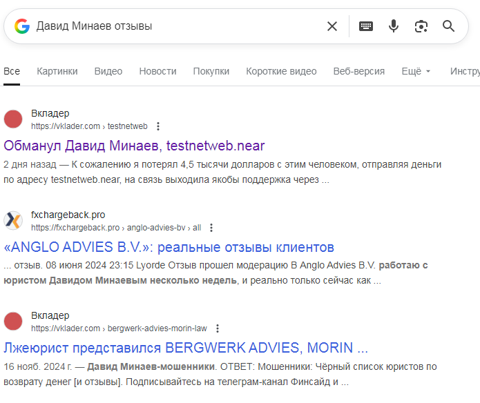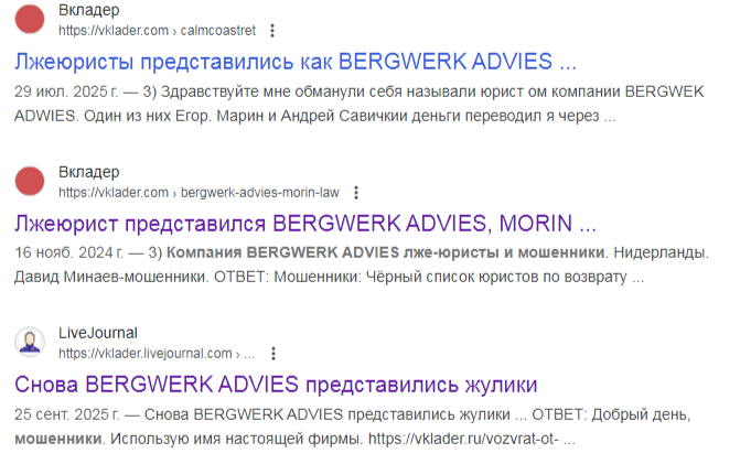В другой статье заявляют, что @ david minaev работает как юрист в компании BERGWERK ADVIES. Данная фирма не имеет большой популярности, но обладает негативным рейтингом. Мошенники часто прикрываются именем этого лохотрона. Юридического оформления у платформы нет, что сигнализирует о ее нелегальной работе.