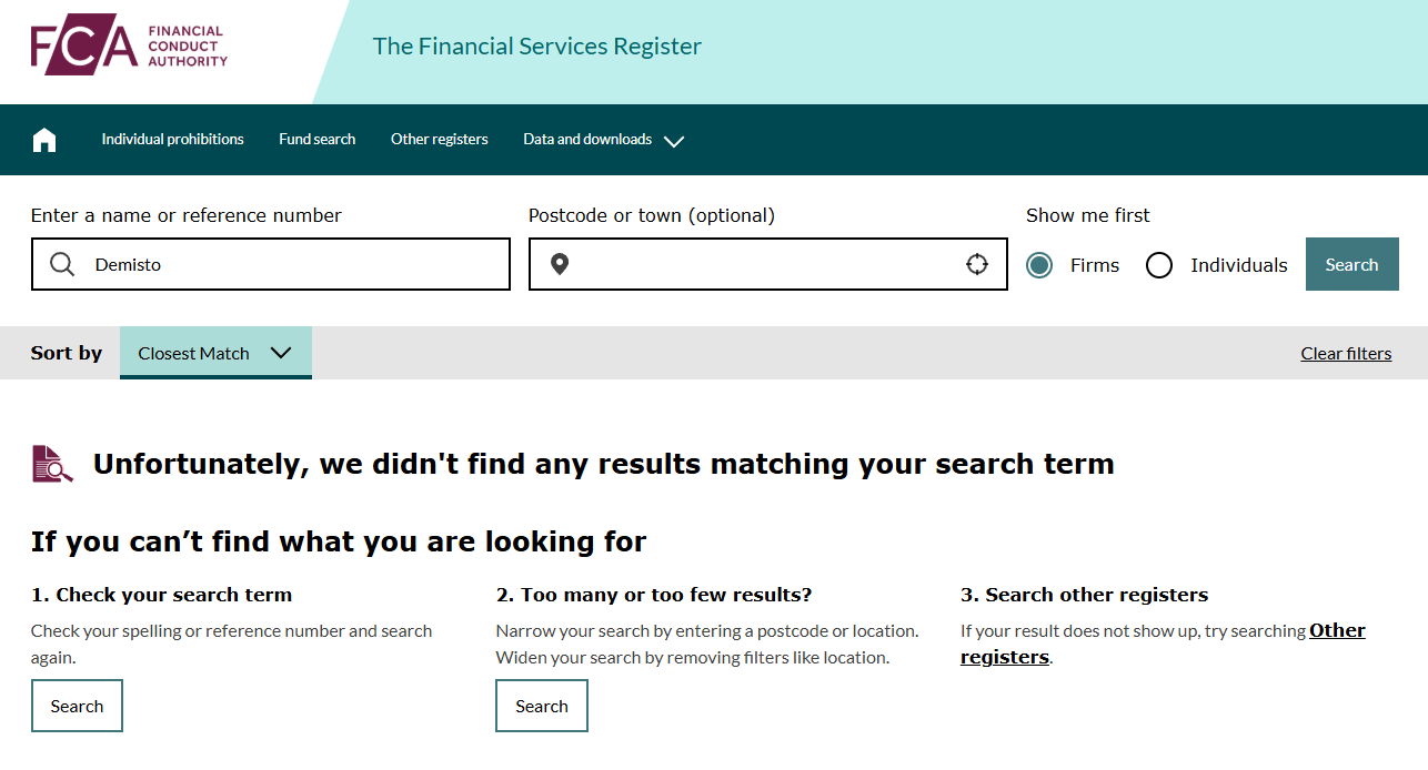 Dem isto заявляет о четырех лицензиях. CSSF, FCA, DFSA, VFSC. Выглядит солидно и внушает доверие. Реальность другая. Ни один регулятор не выдавал документы компании с таким названием. Номера взяты произвольно. Лицензия отсутствует полностью.